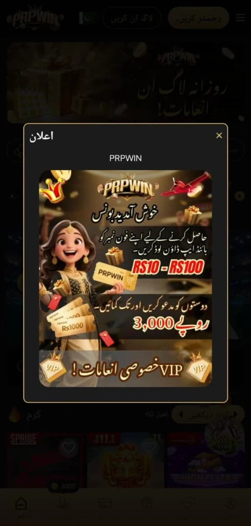 PRPWin Game gives an exciting welcome bonus to all newly registered users. This bonus helps beginners start their gaming journey with extra balance and confidence.